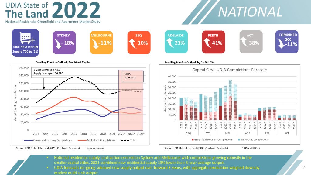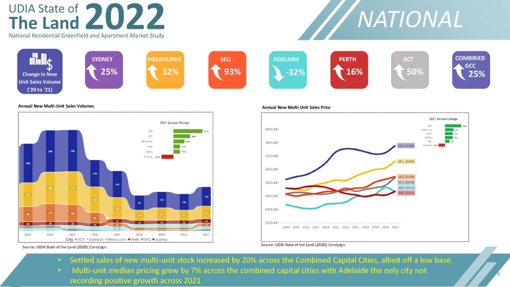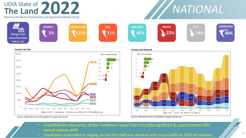 UDIA’s State of the Land (SOTL) report has evolved into one of the most comprehensive annual accounts of new residential market activity across Australia’s major capital cities. The core housing data we showcase in this publication is provided exclusively by our Research Partners: Research4 (Greenfield Land) and CoreLogic (Infill/Multi-Unit).